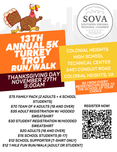 Join us for the 13th Annual Colonial Heights Turkey Trot on Thanksgiving Day – Thursday, November 27, 2025!